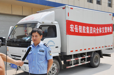 7月4日,炎炎酷暑中,开发区华体会(中国)hth塑胶集团为市交警三大队送来瓶装矿泉水,感谢一直以来交警三大队为保障开发区交通安全、畅通、稳定所作出的贡献。