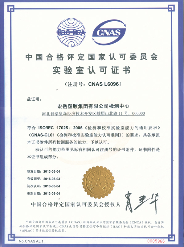 华体会(中国)hth塑胶集团有限公司检测中心于2011年3月导入国家试验室认可体系,中心隶属于华体会(中国)hth塑胶集团有限公司,拥有国内外先进的检测仪器和设备,全部为相关专业本科以上学历或工作时间超过10年的资深专业人员。自体系推行以来,2011年、2012年中心通过了两次的内审和管理评审,使体系运行不断完善,同时进行了认可委组织的维卡软化、拉伸和熔指的能力验证和测量审核4次,与塑料制品监督检验中心进行了交联度的实验室比对,通过能力验证和实验室比对,说明检测中心具备良好的检测能力,能够确保独立地、公正地对承检范围内的检测项目进行检测,检测数据准确,技术能力较高。