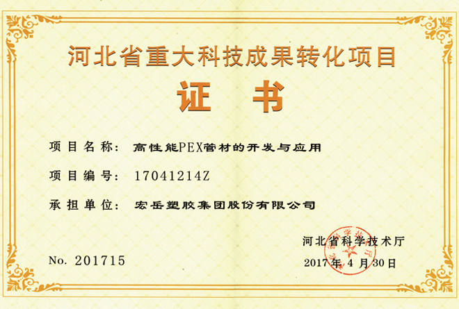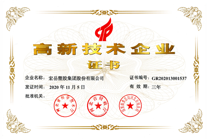 华体会(中国)hth被认定为河北省高新技术企业,华体会(中国)hth牌塑料管材管件被认定为国家免检产品。