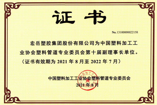 当选中塑协塑料管道专委会副理事长单位,中国建筑金属结构协会地暖委员会副主任委员单位,湖北华体会(中国)hth有限公司正式成立。