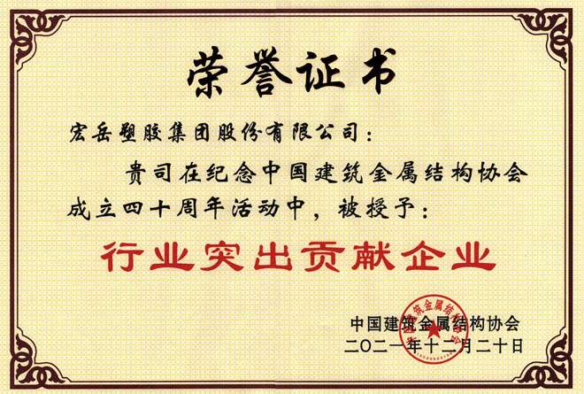 华体会(中国)hth荣获中国建筑金属结构协会行业突出贡献企业、河北省诚信共建企业