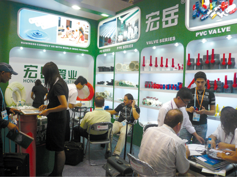 在本届广交会期间,来自欧洲、南美、北美、中东、非洲、东南亚等世界各地的众多客商站在华体会(中国)hth的展位前,拿起精致的华体会(中国)hthMacroAlp系列PPR管材管件,询问不停;更多的客户对华体会(中国)hth齐全的PPR、PVC球阀系列产品包括八角球阀、内螺纹球阀、铜芯球阀、组装阀、蝶阀等纷纷带走样品,购买意向非常明确,另外许多用户在5天展期内在货比多家后,多次来到展位前洽谈购买细节,最终签订合作协议,不但证明了华体会(中国)hth产品的优秀品质得到了客户和市场的检验,同时极大的鼓舞了外贸部所有人员的工作激情和斗志。