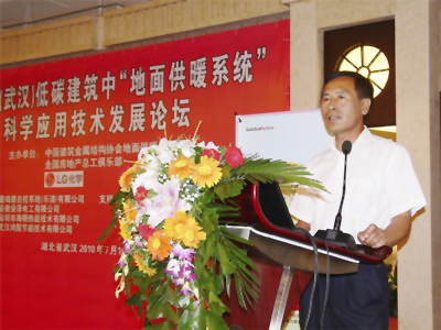 本次论坛由中国地面供暖委员会刘浩秘书长主持,来自住房和城乡建设部、武汉建筑节能主管部门、当地建筑科研院所、房地产企业、地暖企业、地暖系统材料生产企业代表共一百余人参加了本次会议。