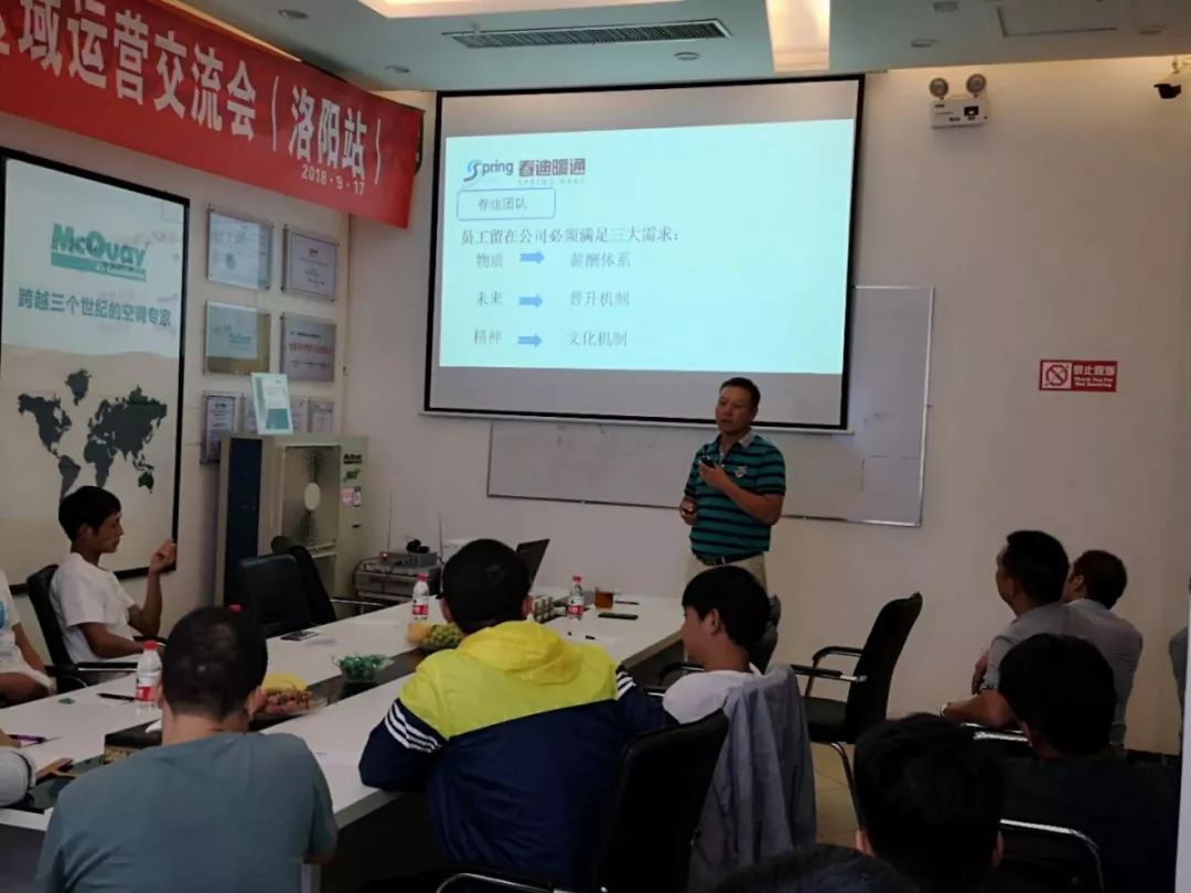华体会(中国)hth1+洛阳服务中心刘总,现场为大家分享了服务中心的市场运营情况及施工规范,包含:渠道建设、人员科学管理等方面的经验和见解及水电暖施工的管理流程等。