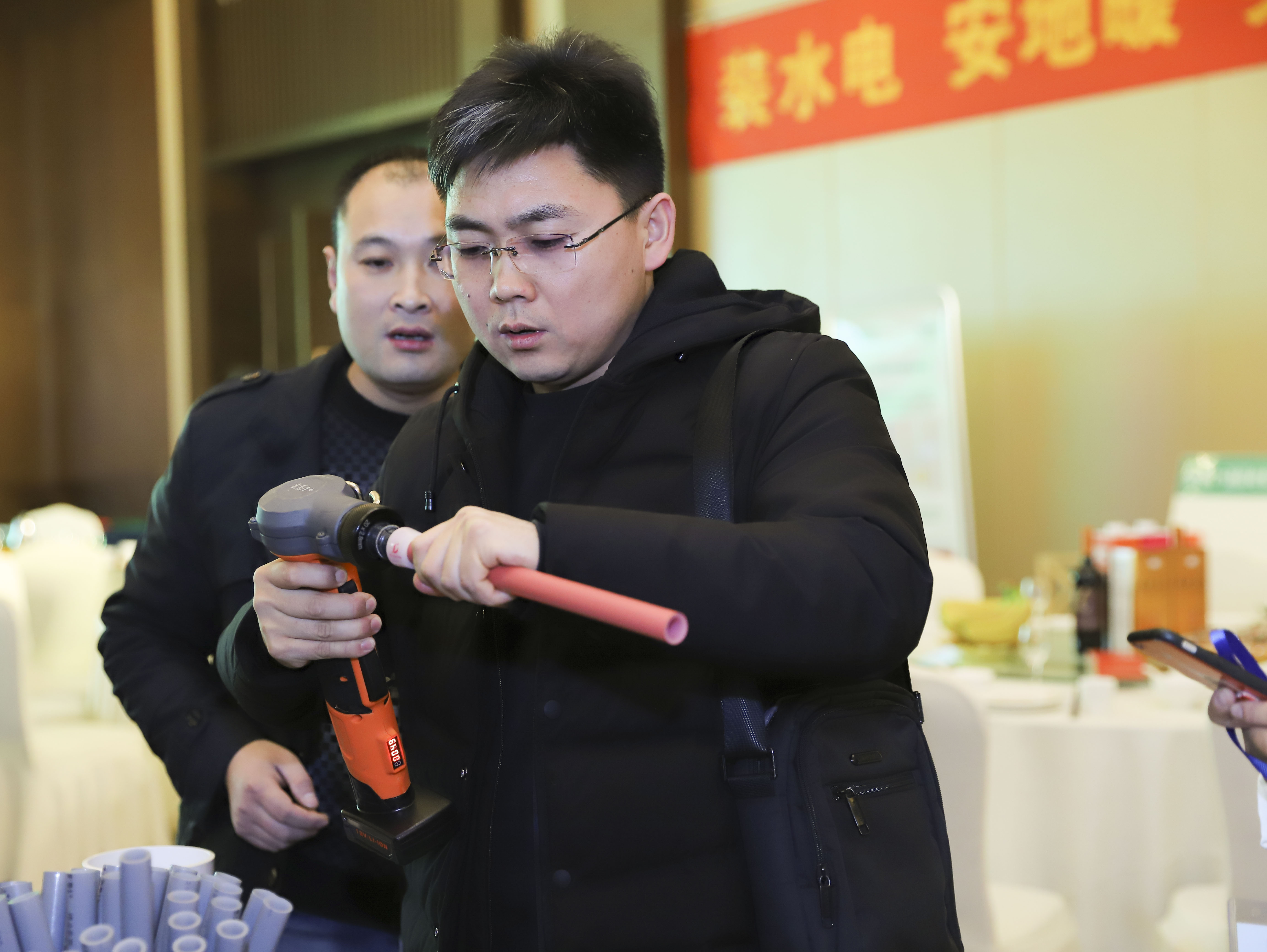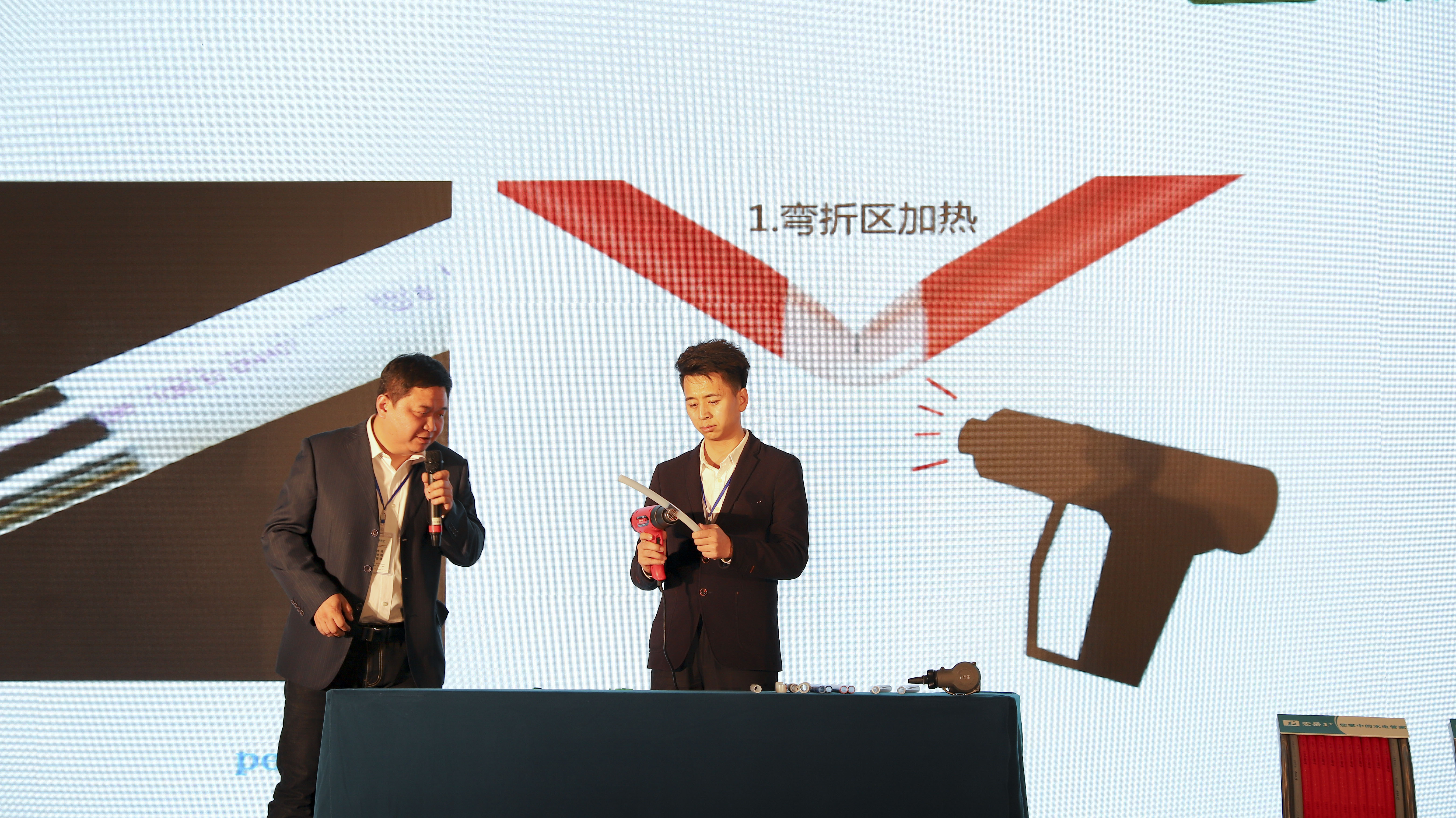 重点提出华体会(中国)hth1+PE-Xa给水系统较目前市场主流给水系统降低70%的风险点,耐压高67%,耐温高32%,会上通过现场实验,展现了PE-Xa给水管超强的记忆功能,应对变形折伤加热即可无损复原。