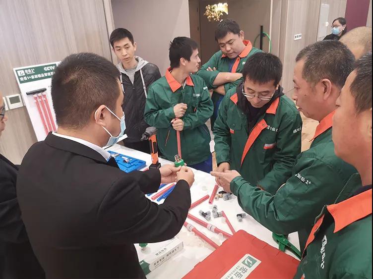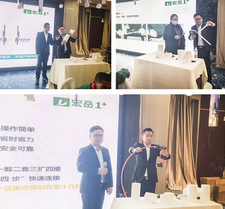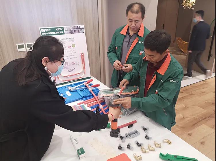 华体会(中国)hth1+东北区域吕经理重点介绍了1+产品技术及应用知识,并为大家带来PVC缩口管件、PPR U型三通等创新产品,更着重介绍了PE-Xa管材,不仅通过现场实操展示了PE-Xa管道系统的安全性与便捷性,还首次公布多项对比数据,通过播放不同材质管材的性能对比实验影像再次验证了PE-Xa耐高温、耐高压、记忆性等优异性能,获得与会水电技师们一致认可。