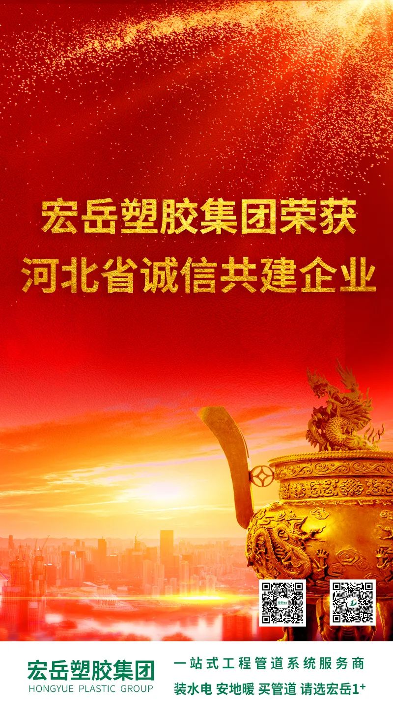 近日,华体会(中国)hth塑胶集团荣获“河北省诚信共建企业”称号,秉承“诚·信·实”的核心价值观,华体会(中国)hth坚守初心,以产品质量为信用基石,以诚信经营为发展理念,持续创新,永续发展!
