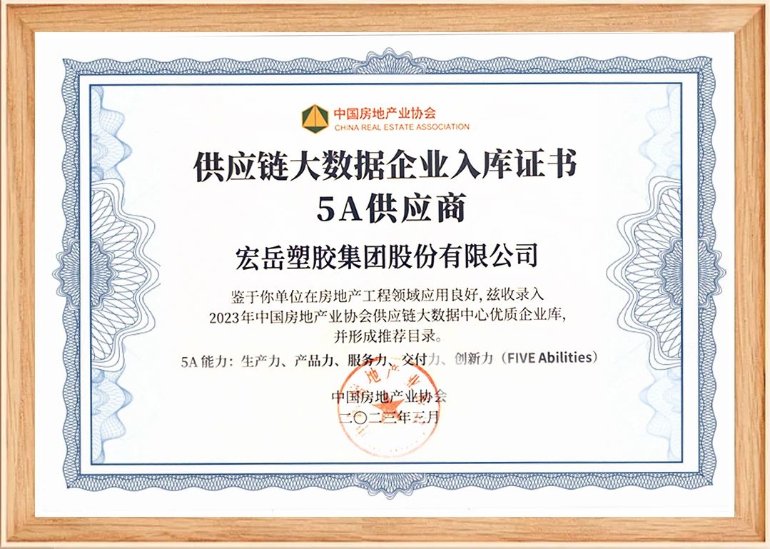 测评以供应链企业申报数据、cric数据库、公共招投标服务平台市场项目信息数据为样本,覆盖经营数据、工程业绩、供应水平、绿色产品、用户评价、专利技术、品牌影响七大指标,辅以专家赋分、线下评审,以较为科学的测评方法,得出首选指数及样本首选率,评估出具有较强竞争力的不动产供应商及服务商品牌。测评成果收录入中国房地产业协会建立的供应链大数据中心建立“5A供应商”企业库,华体会(中国)hth管业同步入选。