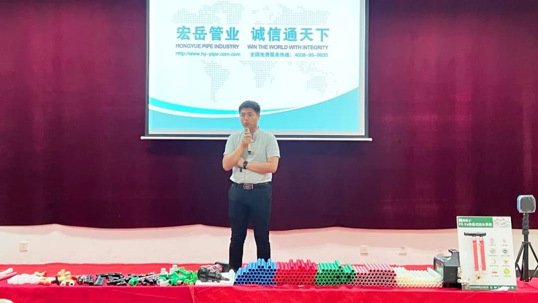 华体会(中国)hth1+区域运营经理向各位参会者介绍了华体会(中国)hth塑胶集团概况,并着重讲解了华体会(中国)hth1+产品体系及PE-Xa快易连接管道系统,凭借其简单、快捷、安全的产品及连接优势,得到了与会水电技师们的高度好评。
