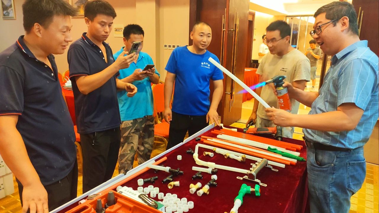 华体会(中国)hth1+区域运营经理向各位参会者介绍了华体会(中国)hth塑胶集团概况,并着重讲解了华体会(中国)hth1+产品体系及PE-Xa快易连接管道系统,凭借其简单、快捷、安全的产品及连接优势,得到了与会水电技师们的高度好评。
