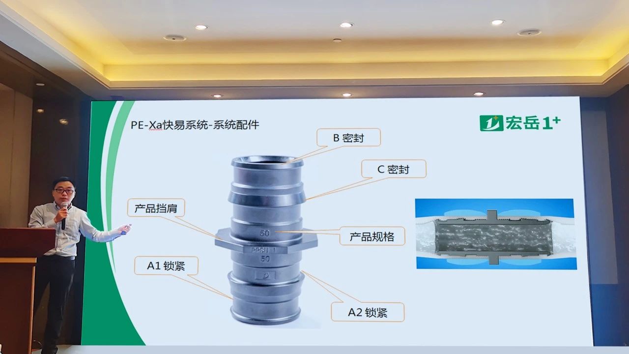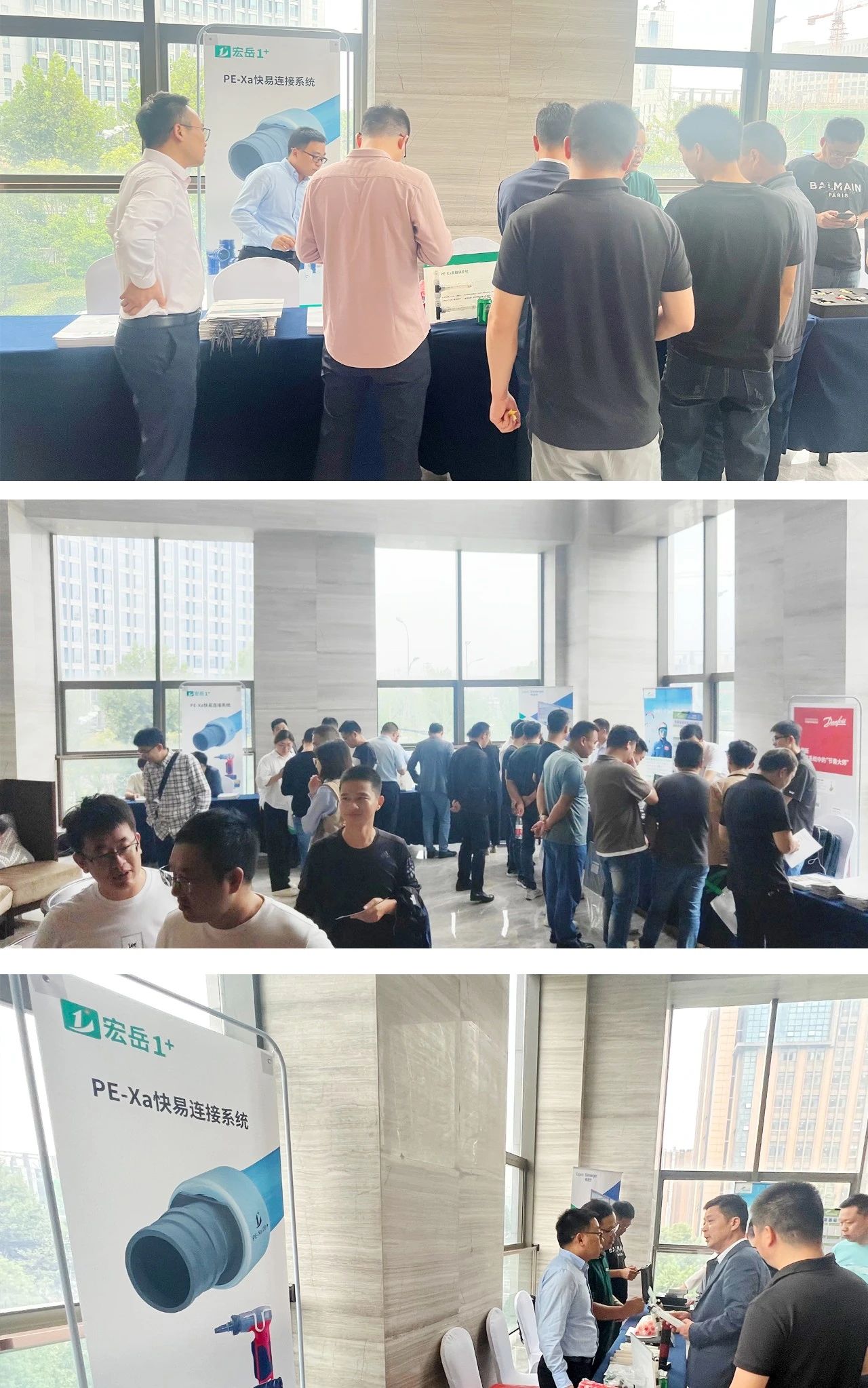 会议现场,华体会(中国)hth集团高级技术工程师陈工就集团规模概况做简要介绍,并就PE-Xa快易连接系统的特点以及在两联供管路安装上的优势进行详尽讲解。现场展台重点展示了PE-Xa快易连接管道系统,参会者纷纷驻足停留咨询了解、连接实操,此系统连接凭借其简单、快捷、安全的产品及连接优势,受到了与会者们的一致好评!